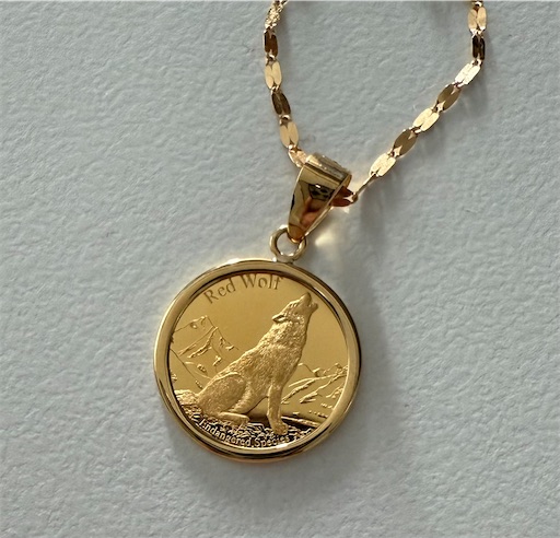 999.9ファインゴールドのコインにk18の枠。以前購入したチェーンがちょうど良くて大成功。