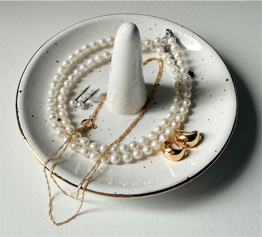 私は基本的にゴールドのシンプルジュエリーに、シルバーのデザイン性のあるジュエリーやアクセサリー、パールをレイヤードする感じで使っています。ゴールドジュエリーの良いところは、お手入れいらずなところ。ずぼらな私にぴったりなのです。シンプルなデザインなら長く使えるので、買って損はないなと改めて思いました。